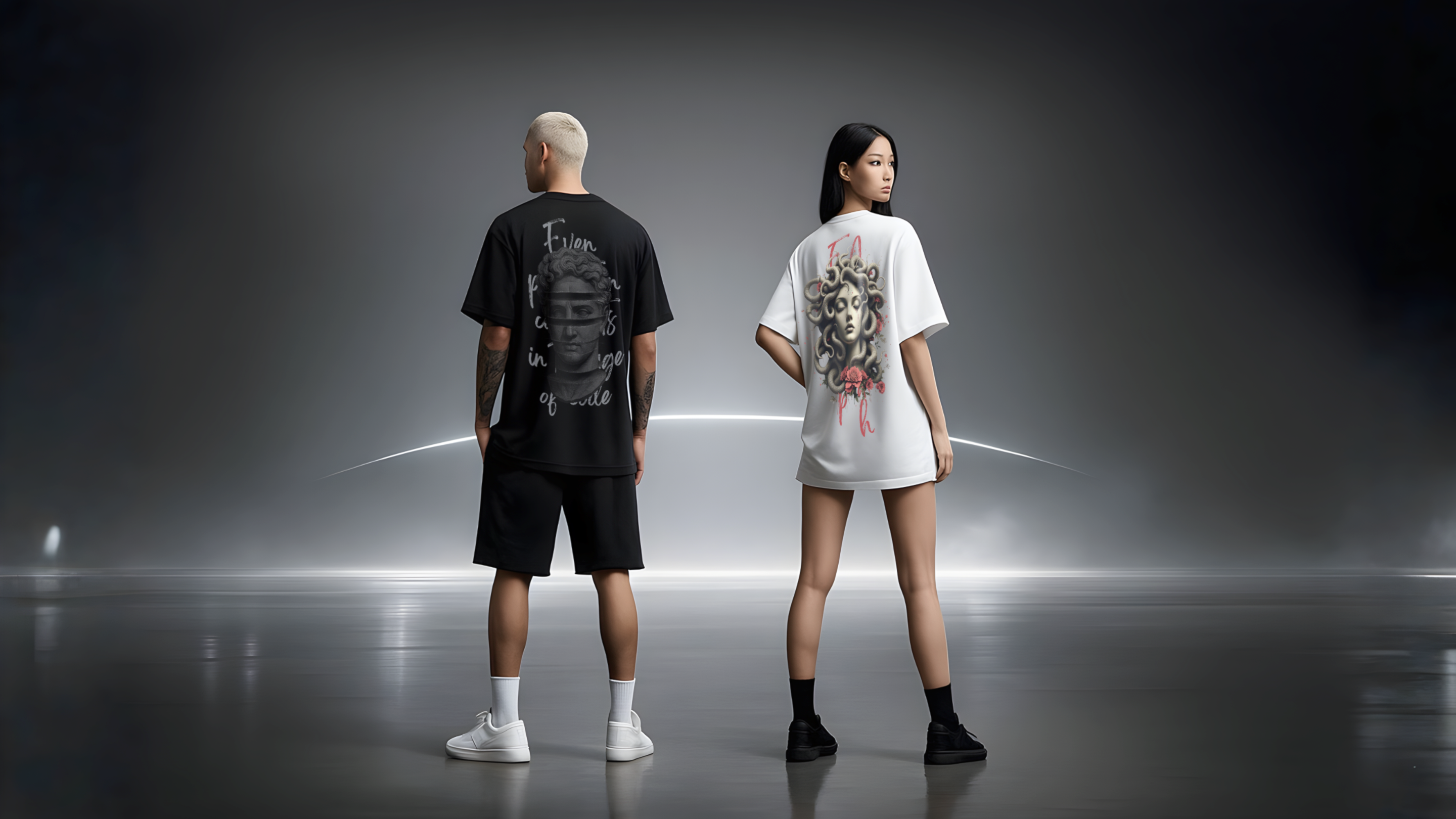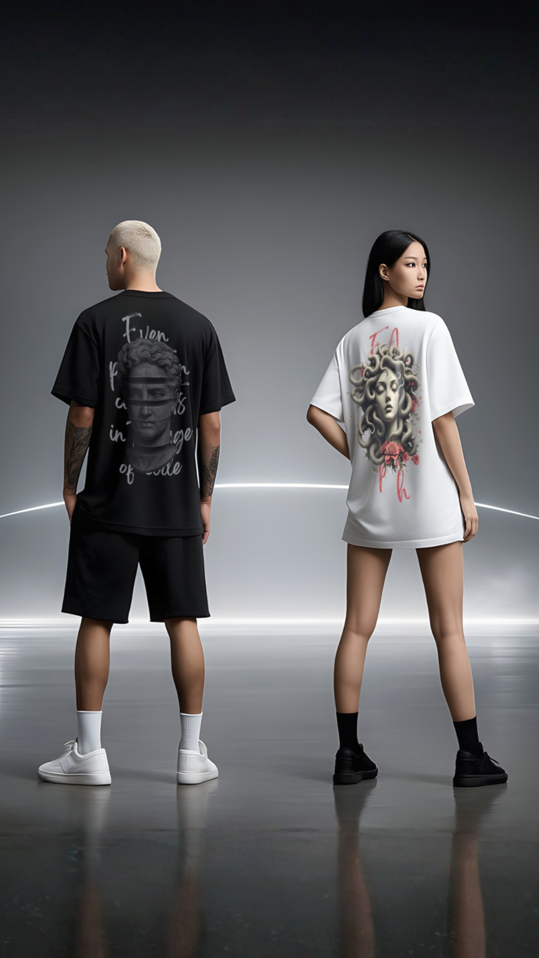 Create a vaporwave design with an ancient Greek statue and neon colors